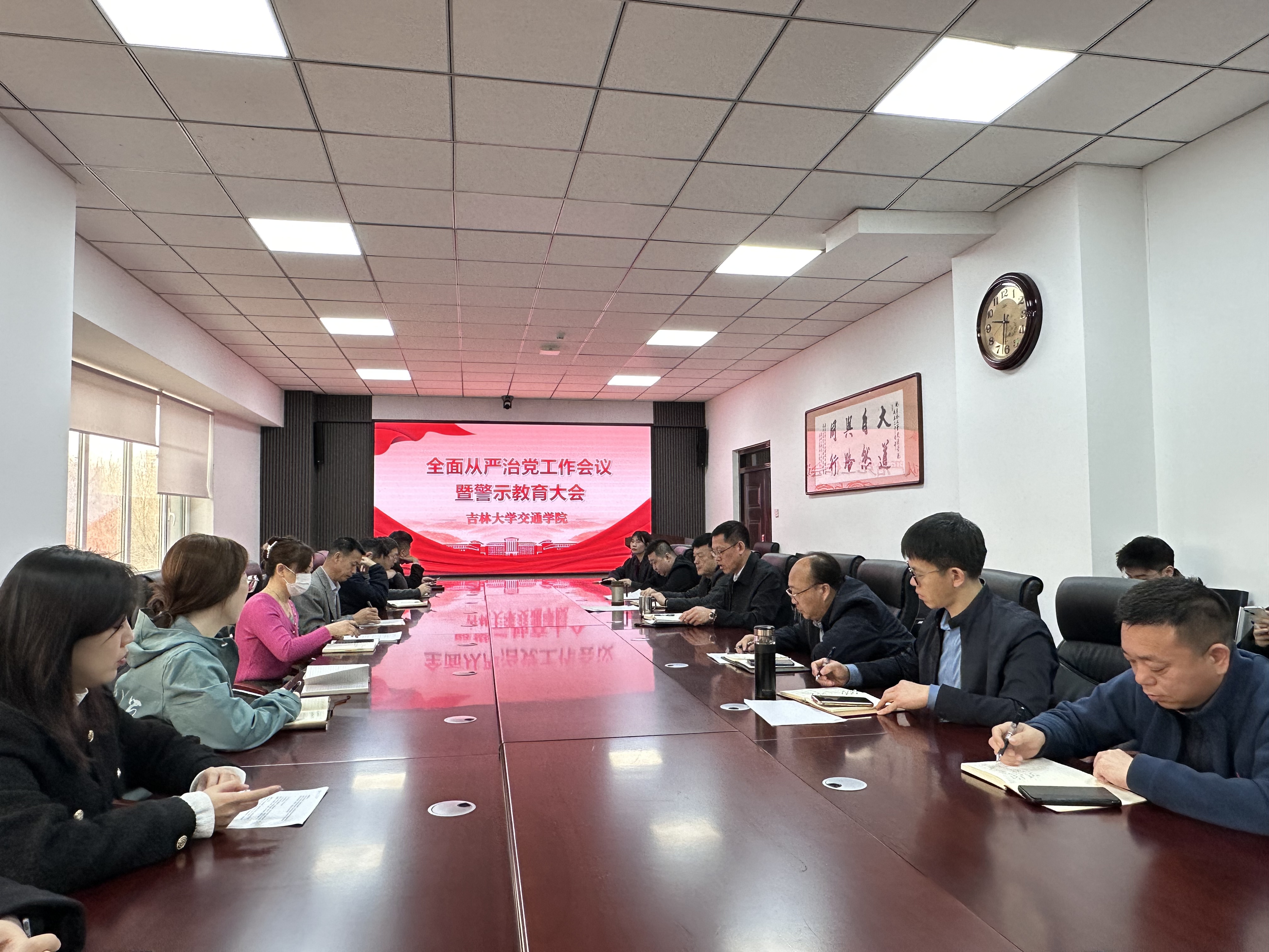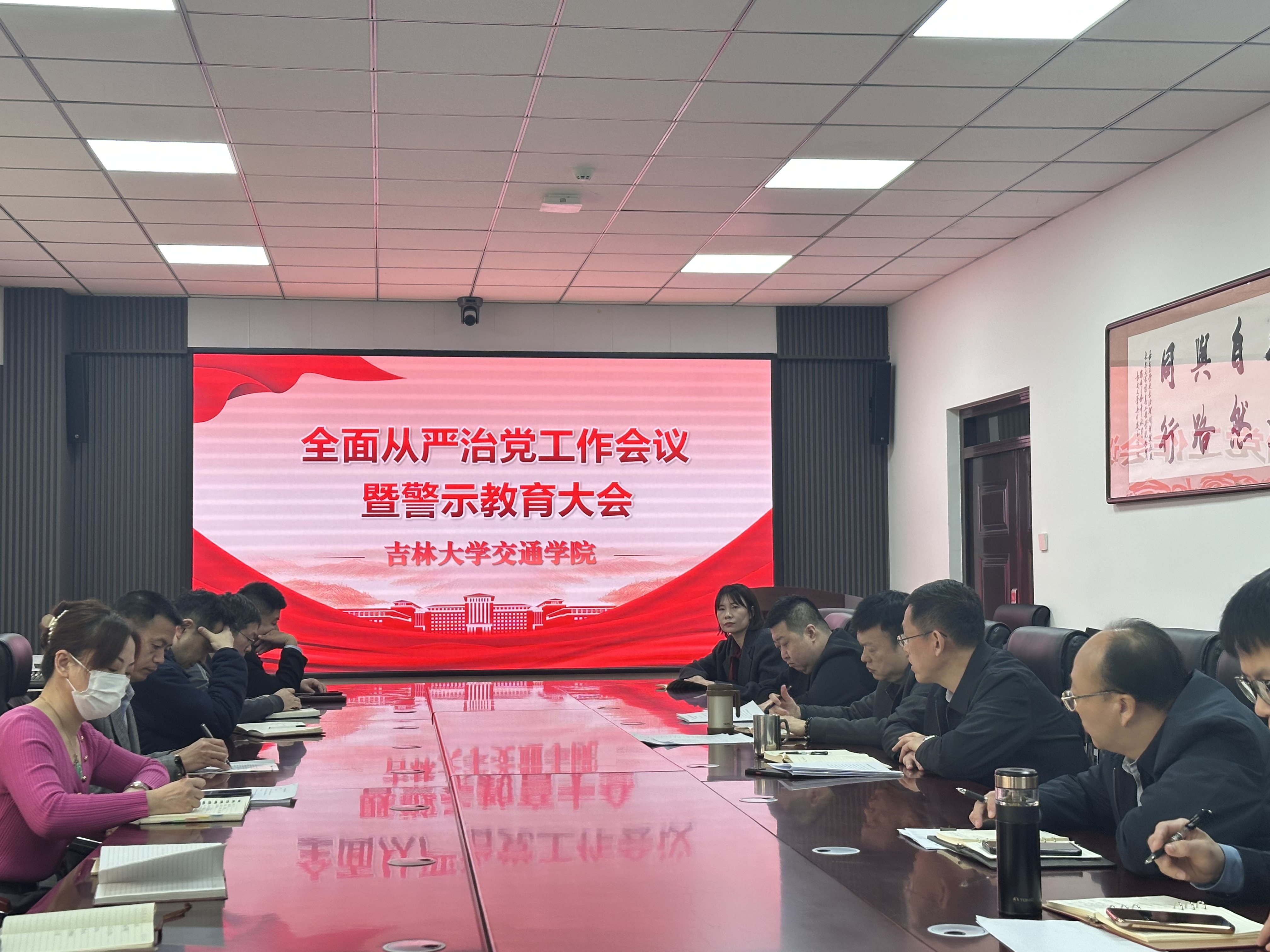 党委书记李善兴首先传达了学校关于全面从严治党的相关部署和要求以及校党委副书记、纪委书记,国家监委驻吉林大学监察专员胡漫同志的讲话精神。他强调,全面从严治党是新时代党的建设的根本要求,必须持之以恒、常抓不懈。他指出,反腐败斗争形势依然严峻复杂,党员领导干部必须保持清醒头脑,以永远在路上的坚韧执着,持续推进正风肃纪反腐。